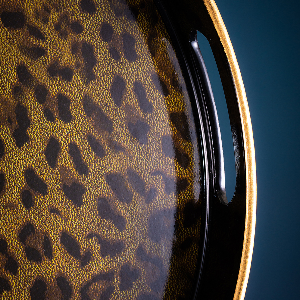 Round leopard print tray
