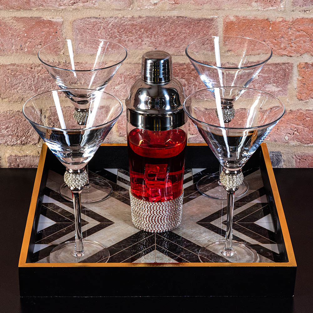 Long Stemmed Cocktail Glasses Silver Diamante Set of 4