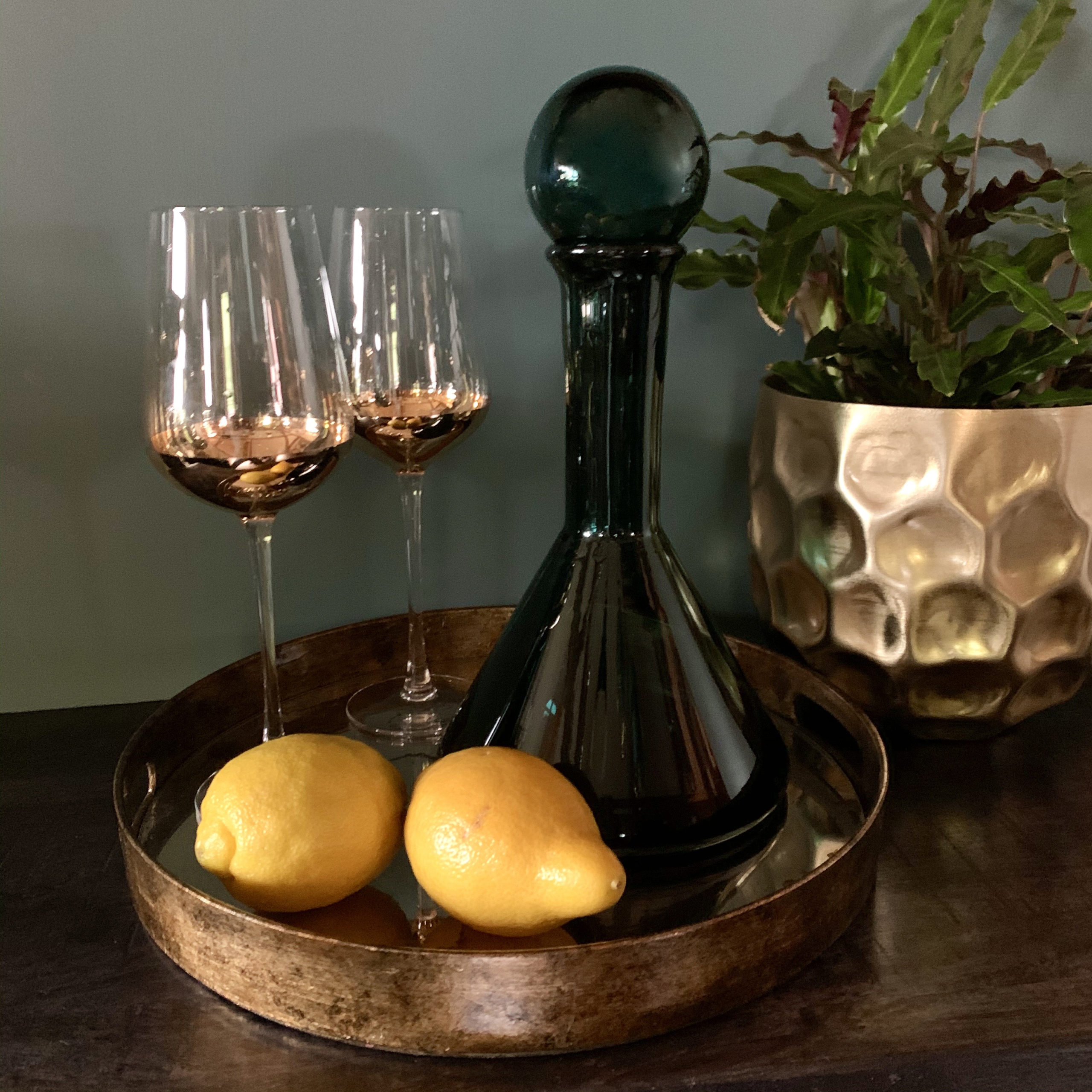 Team together with some gorgeous glassware (we have styled here with our set of 4 copper wine glasses for a striking contrast) and a beautiful tray (marble effect mirror tray) to complete the look.