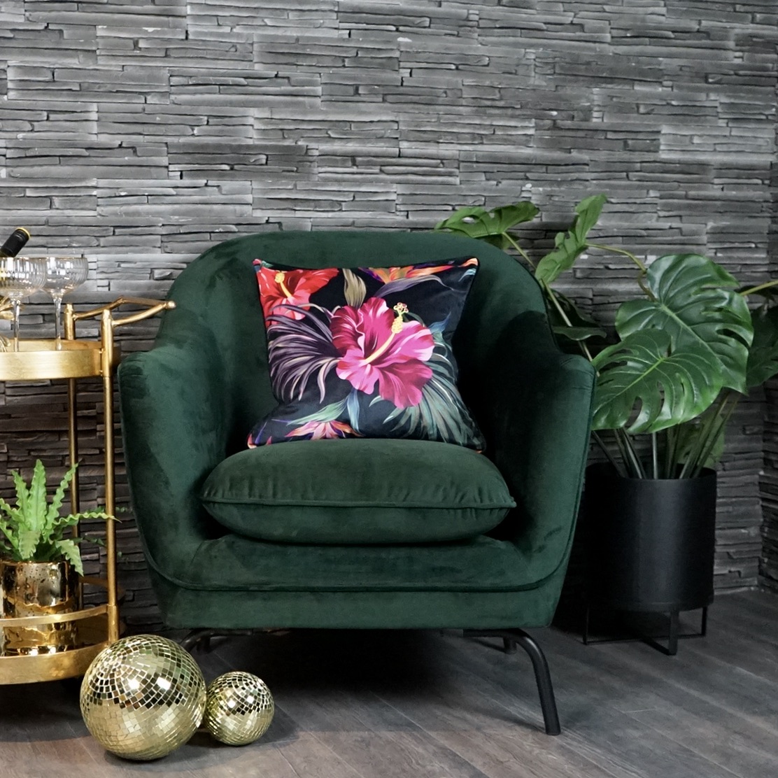 Shown here with our fabulous feather filled Tropical Floral Velvet cushion.