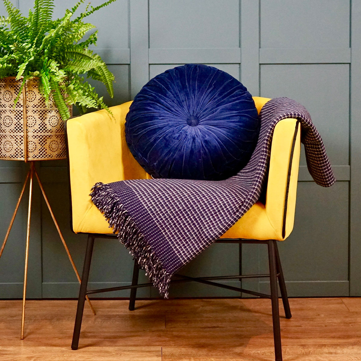 This stylish mustard yellow club chair with black piped edge is an absolute favourite with us here at Margo & Plum.