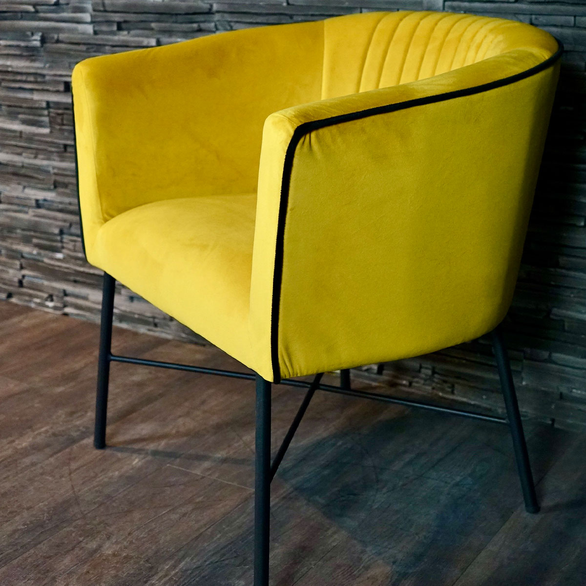 Add an amazing pop of vibrant colour to your home, office or business with our gorgeous Club Chair, the mustard yellow colour with black piped edge simply perfect to inject bold style, brighten and add an injection of luxury and glamour to any room or decor.