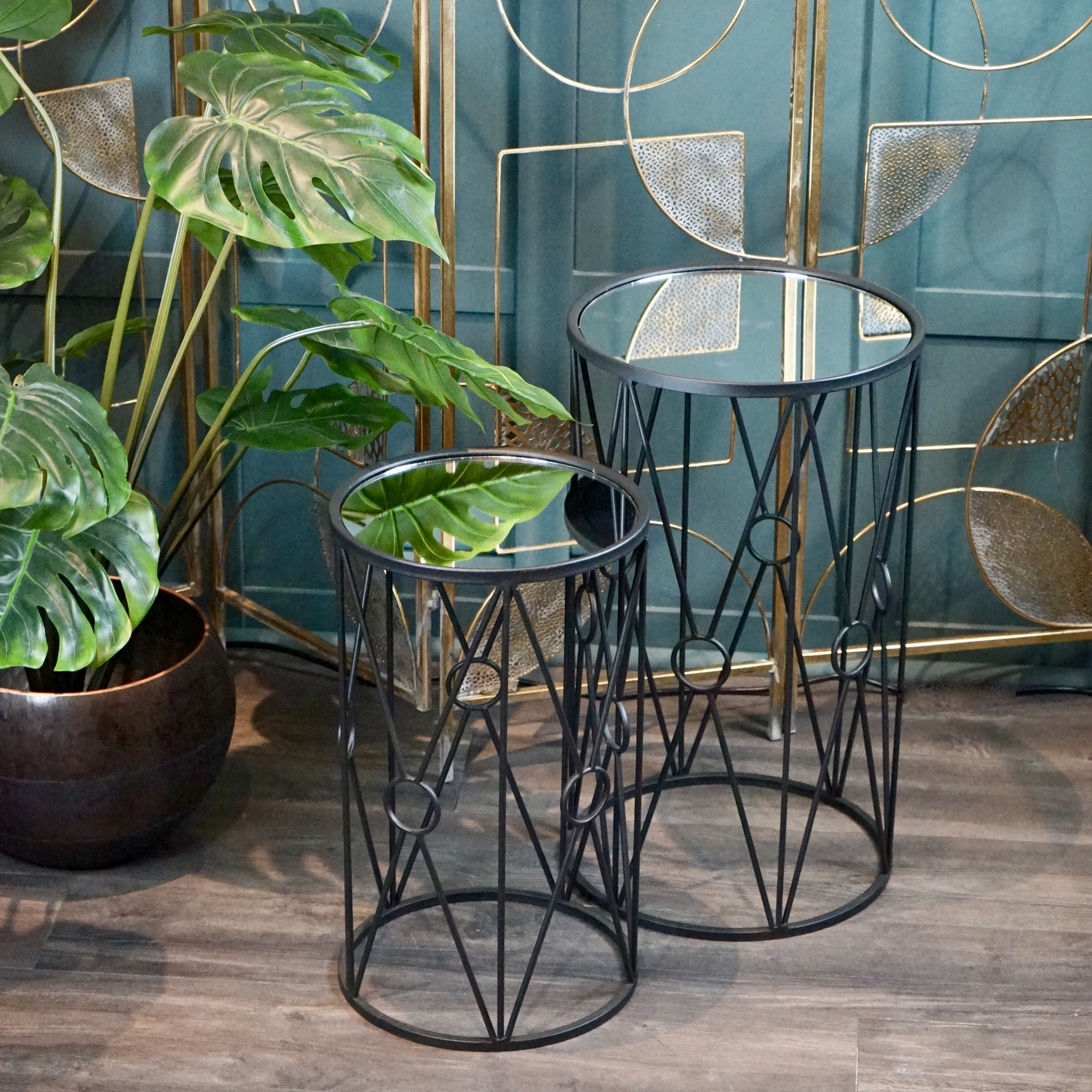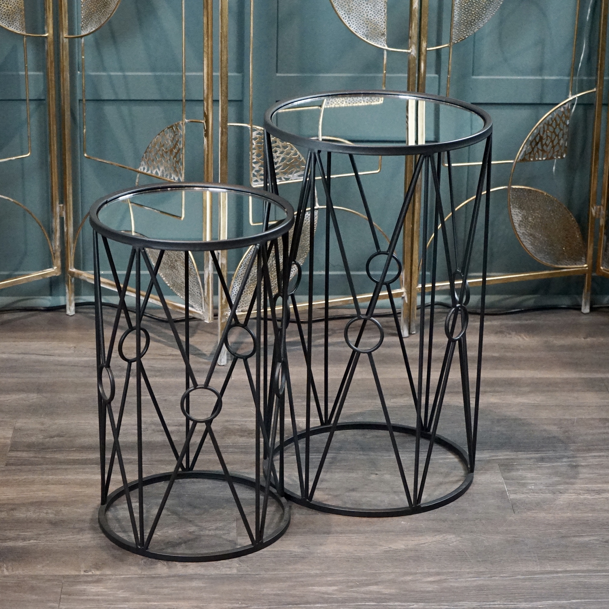 Both practical and decorative these elegant tables can be stored away (smaller table sits perfectly inside the larger one) if desired and used when extra surfaces are required, making them perfect for entertaining.