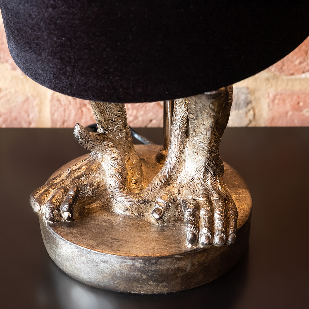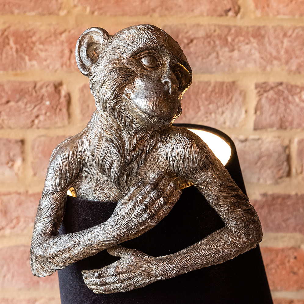 This cheeky monkey would be a quirky addition to any home. A great alternative to a traditional table lamp he is a fabulous statement piece for any space. In shimmering silver with a gorgeous black velvet shade this cheeky chappie introduces witty humour in an instant and we think you will love him!