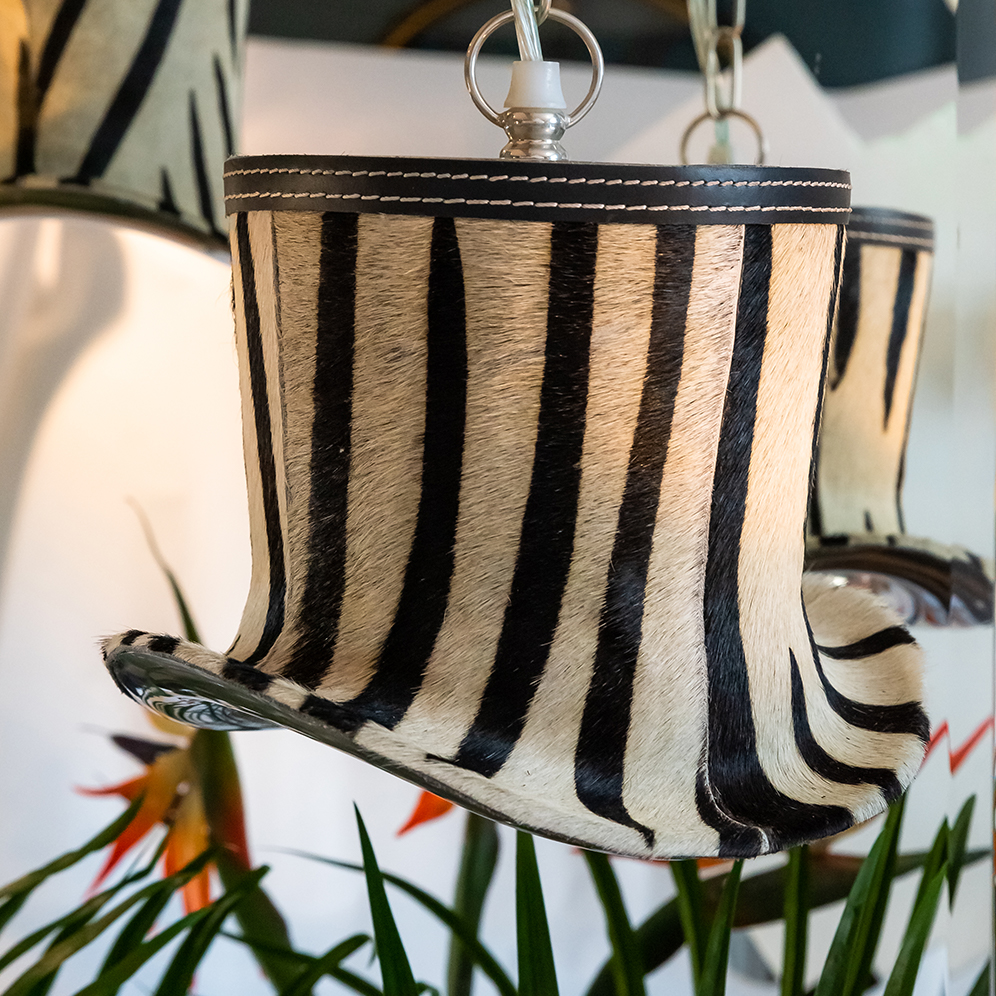 These top hats also look great hanging either side of a bed to give a unique twist on a bedside lamp, in the corner of a room instead of a floor lamp or over your dining room table for some glorious ambience.