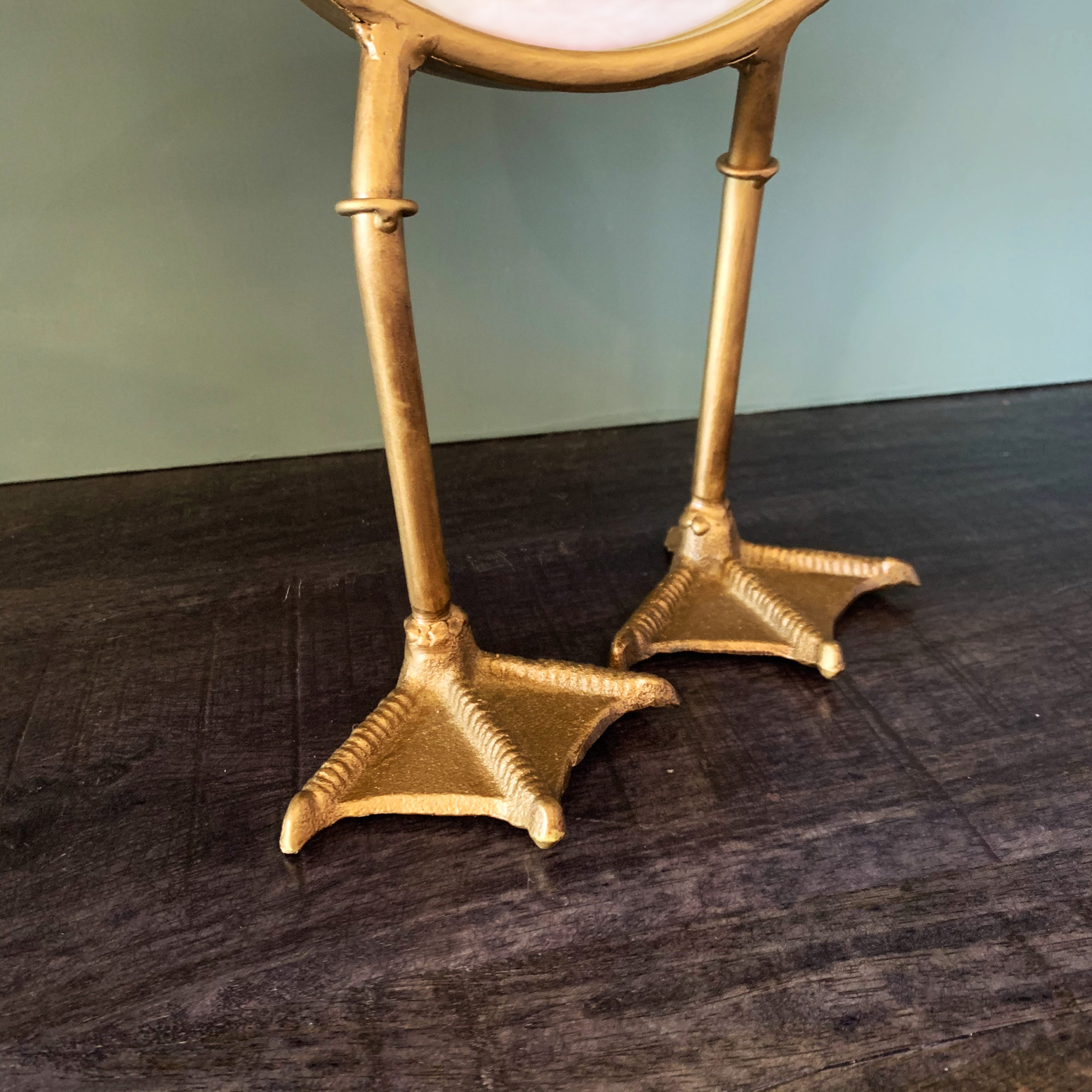 A quirky and fun free-standing mirror which couldn’t fail to make you smile with it’s endearing little bird feet and jaunty pose.