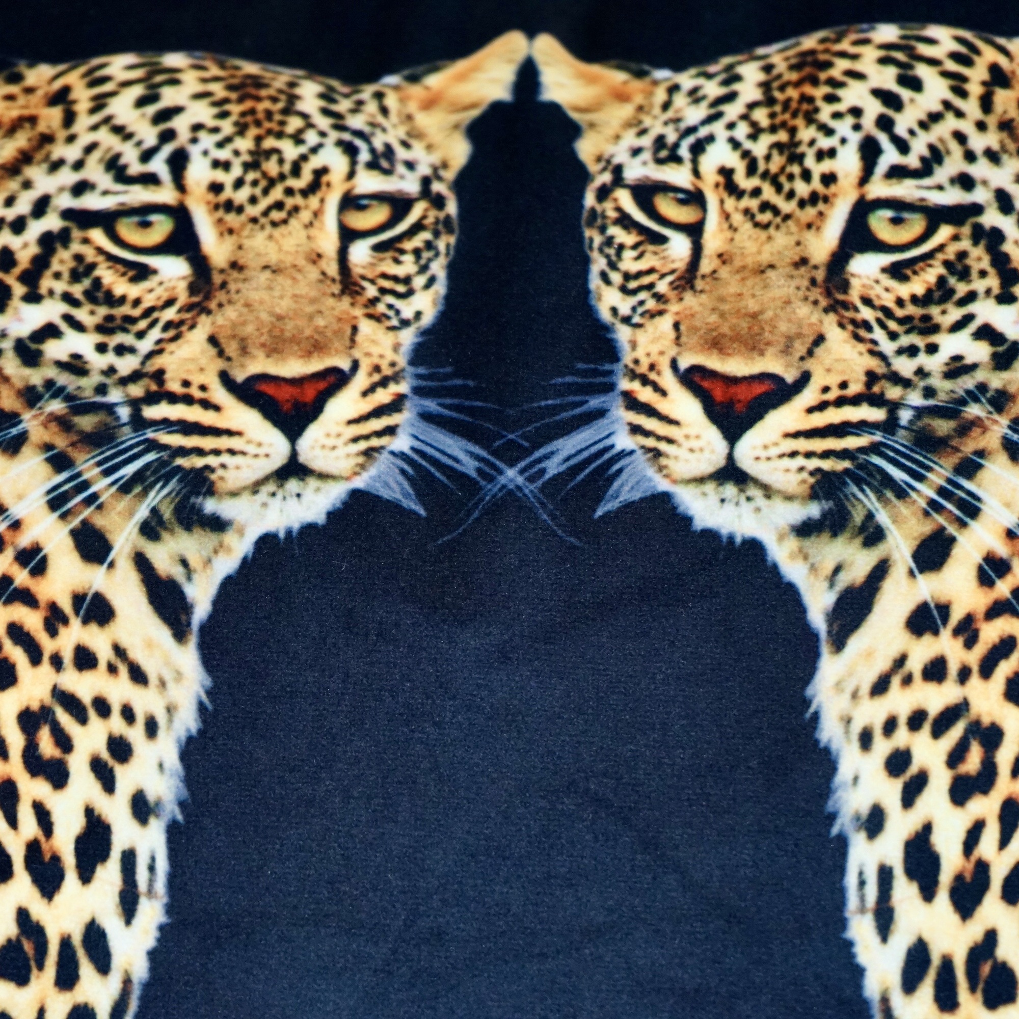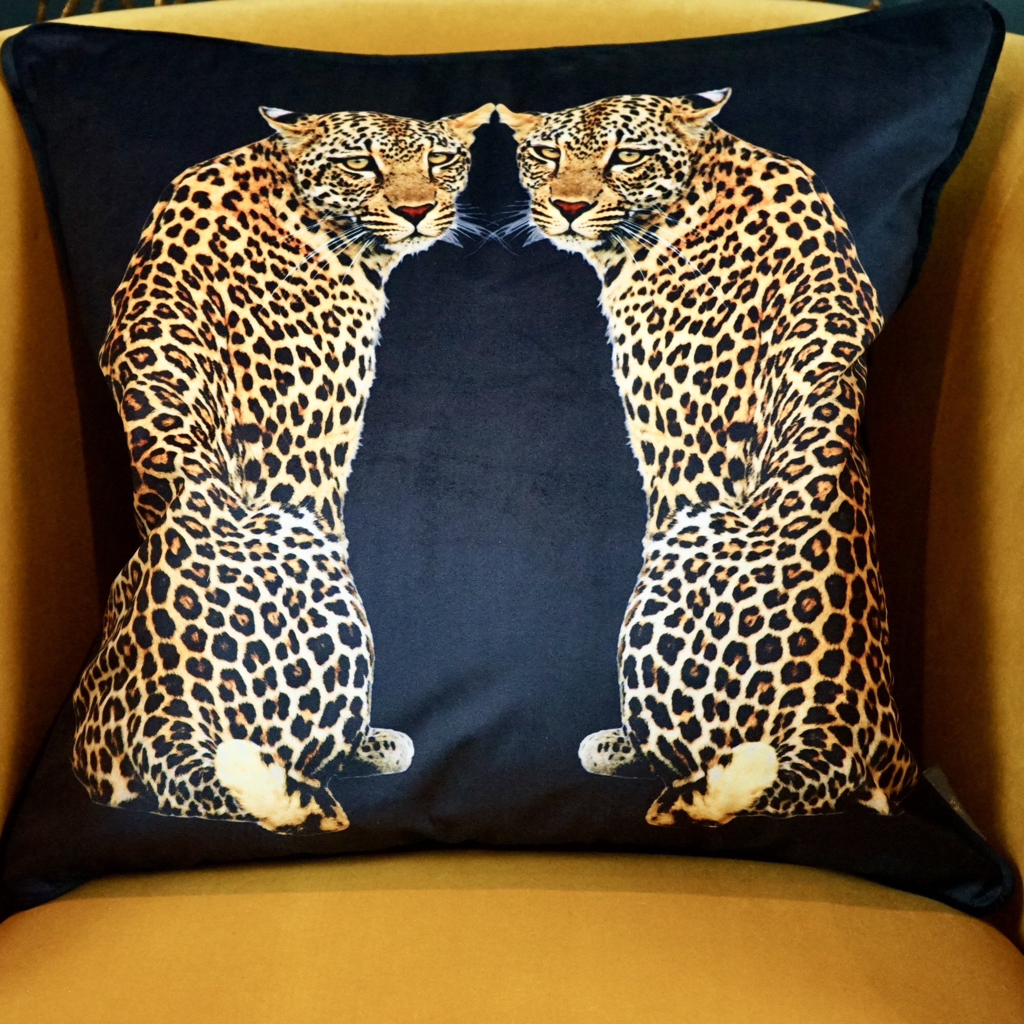 A stunning design on the softest velvet these gorgeous leopards strike a dramatic pose.
