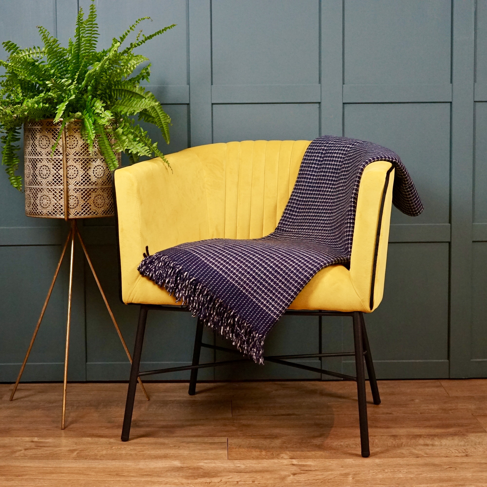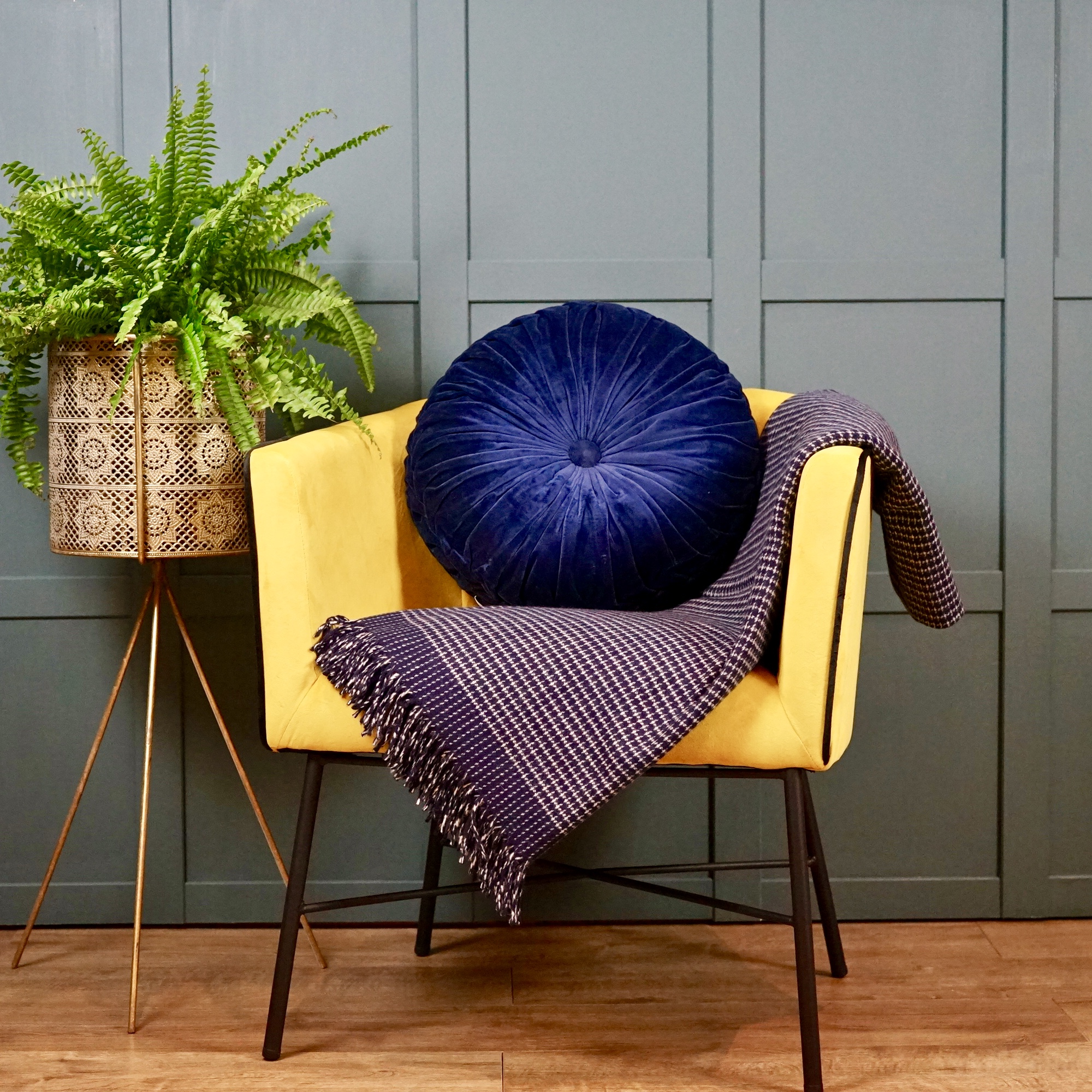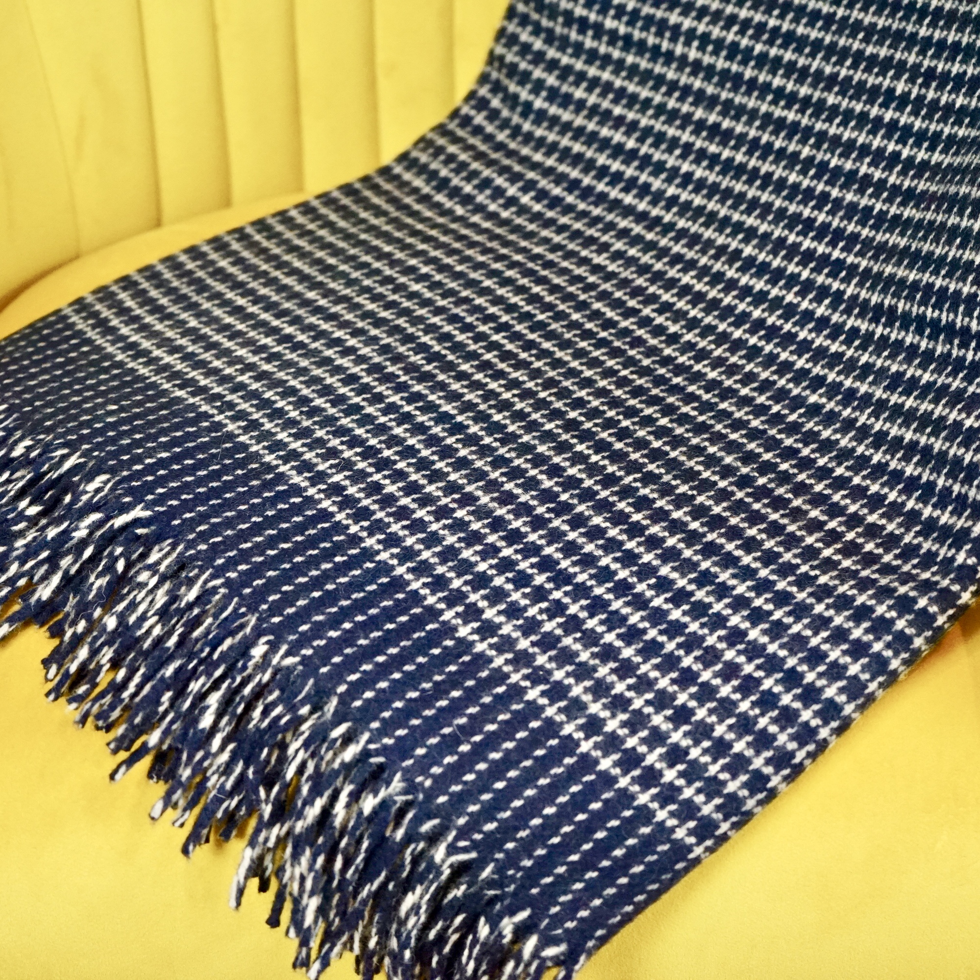 The deepest navy with a subtle white check makes for a striking combination that would look fabulous draped over a chair or sofa.